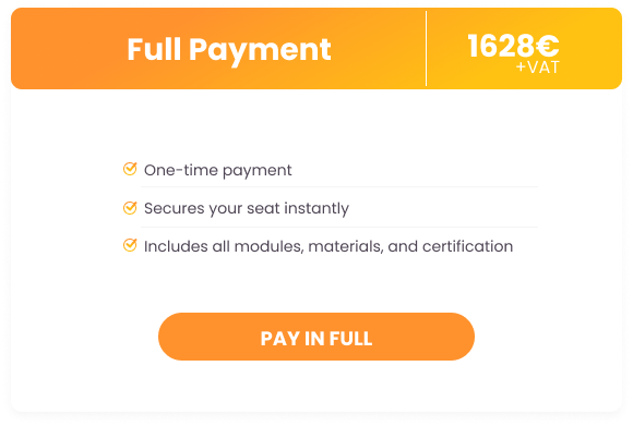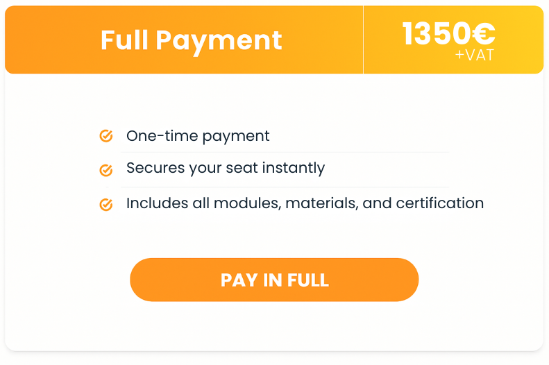 Fully online, highly interactive: live sessions, peer coaching, and practical assignments designed for real-world application.